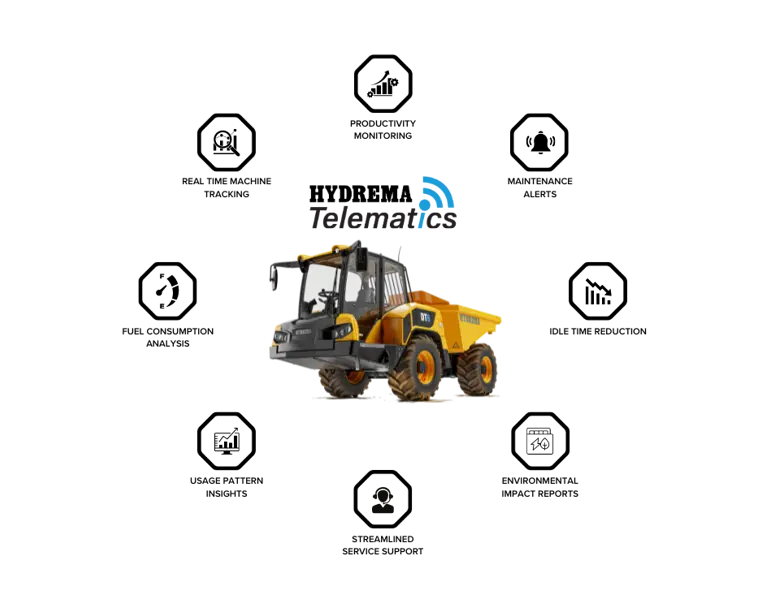 With Hydrema Telematics, you have access to a wealth of real-time data - from fuel consumption and levels to operating temperatures and oil pressure. All available anywhere, anytime, via an intuitive web portal or directly on your smartphone. This comprehensive monitoring is further enhanced by offering instant fault code diagnostics, making it easy to coordinate maintenance with surgical precision, reducing unexpected downtime.